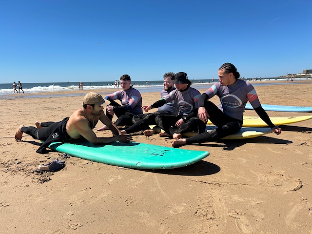 - Apprendre les bases du surf, expérimenter l’apprentissage en groupe et l’apprentissage individuel d’une activité aussi difficile
